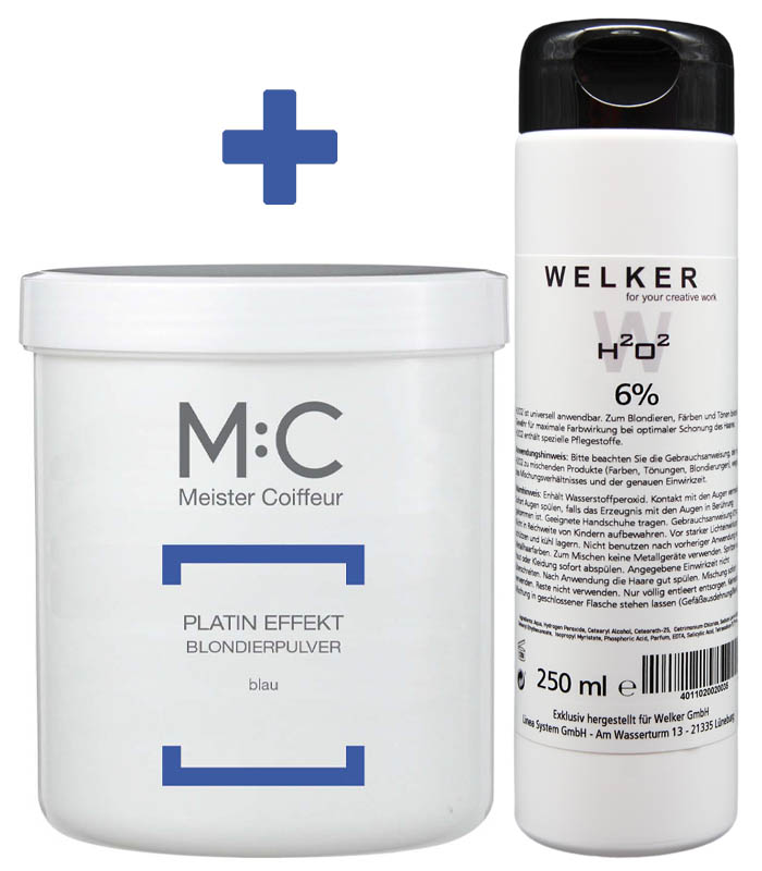 M:C – Platin Effekt Blondierpulver blau 100g + WELKER H2O2 250ml GRATIS dazu!